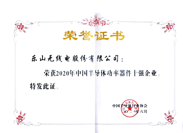 我公司自2018年开始,连续三年荣获中国半导体功率器件十强企业之一。