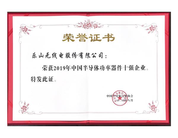 近日,中国半导体行业协会根据“2019年第四季度企业季度调查表”以及各分会、地方协会2019年企业销售额统计情况排出“2019年中国半导体行业功率器件十强企业”。乐山无线电股份有限公司再次荣获2019年中国半导体功率器件十强企业,位列第五。